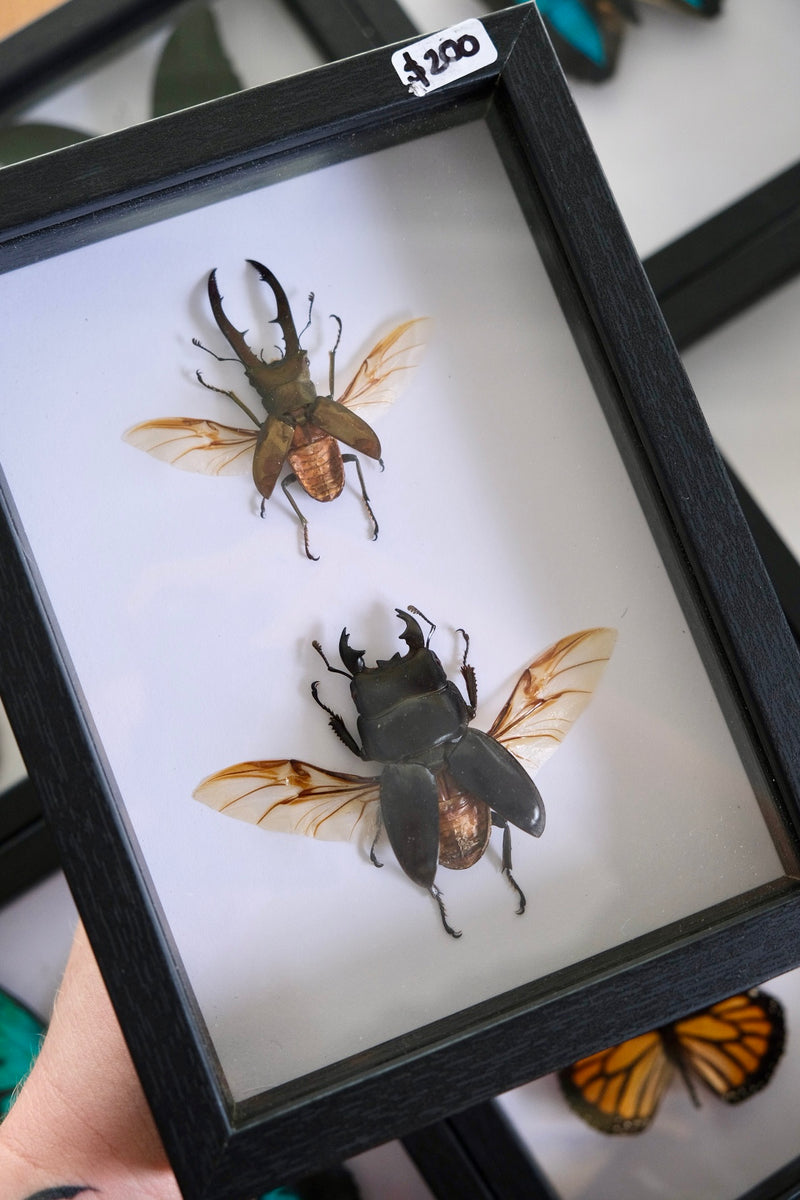 Stag Beetle Duo / Cyclommatus Metallifer & Dorcus Titanus in a frame